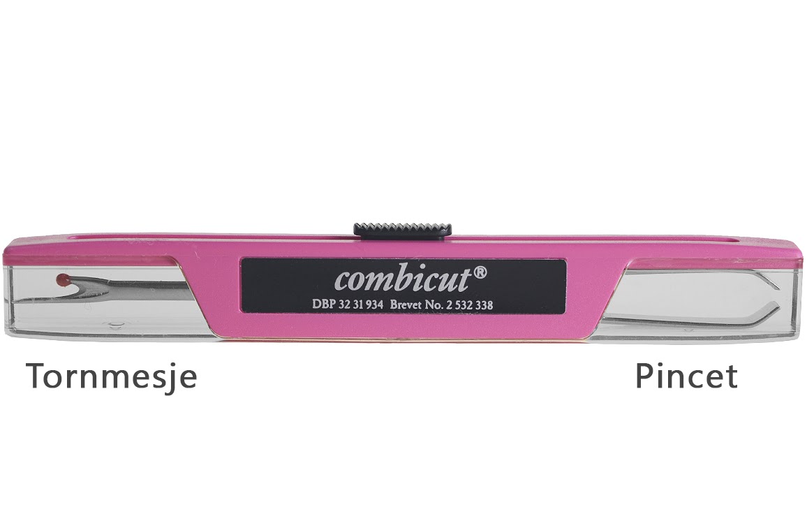 Combicut: Tornmesje en PincetEen handige tool, de combicut, een combinatie van een tornmesje en een pincet.
