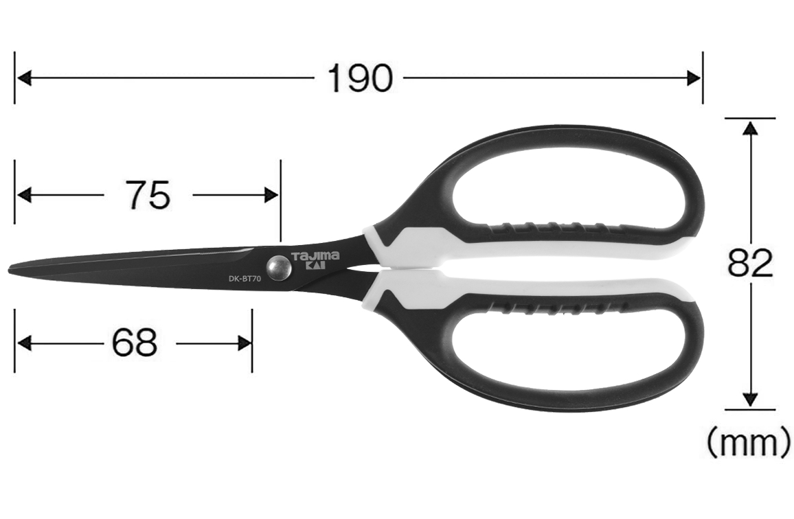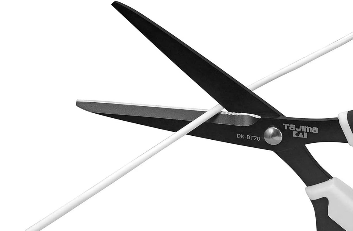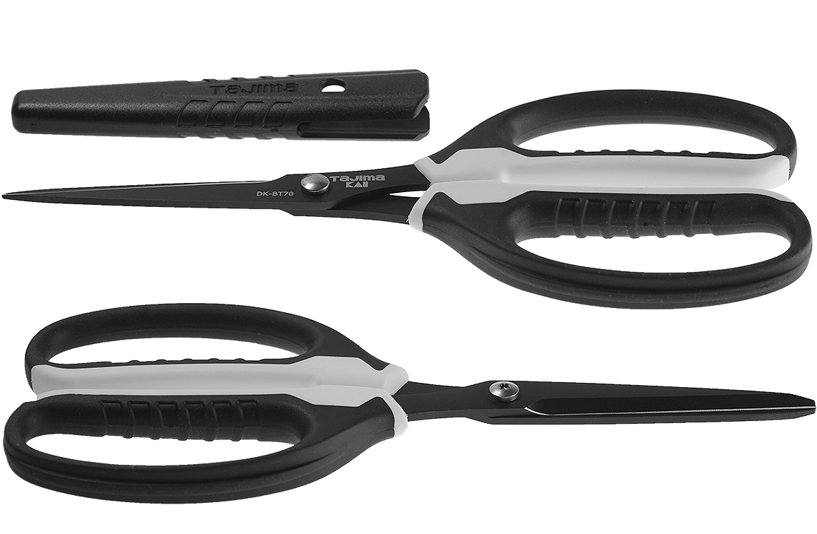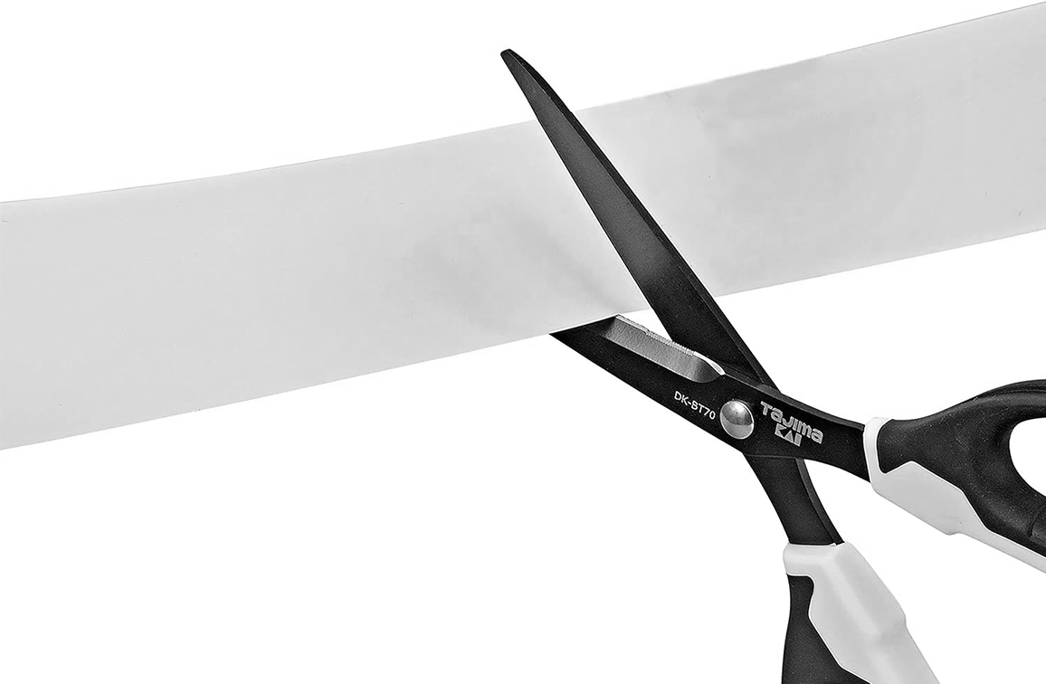Uitermate voor het knippen van diverse soorten tape tot 50mm breed, dankzij de fluorinecoating knipt deze schaar met groot gemak o.a. verpakkingstape, elektrische isolatietape, schilderstape, pp omsnoeringsbanden en soortgelijke materialen.