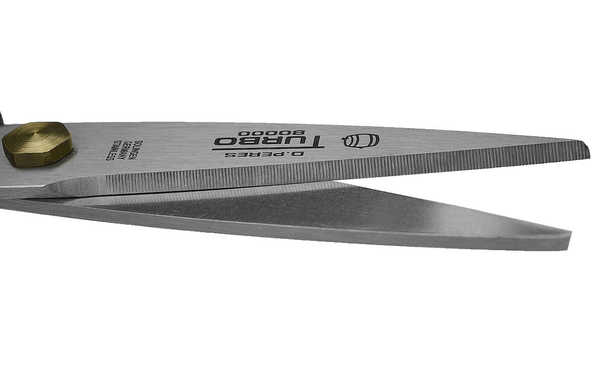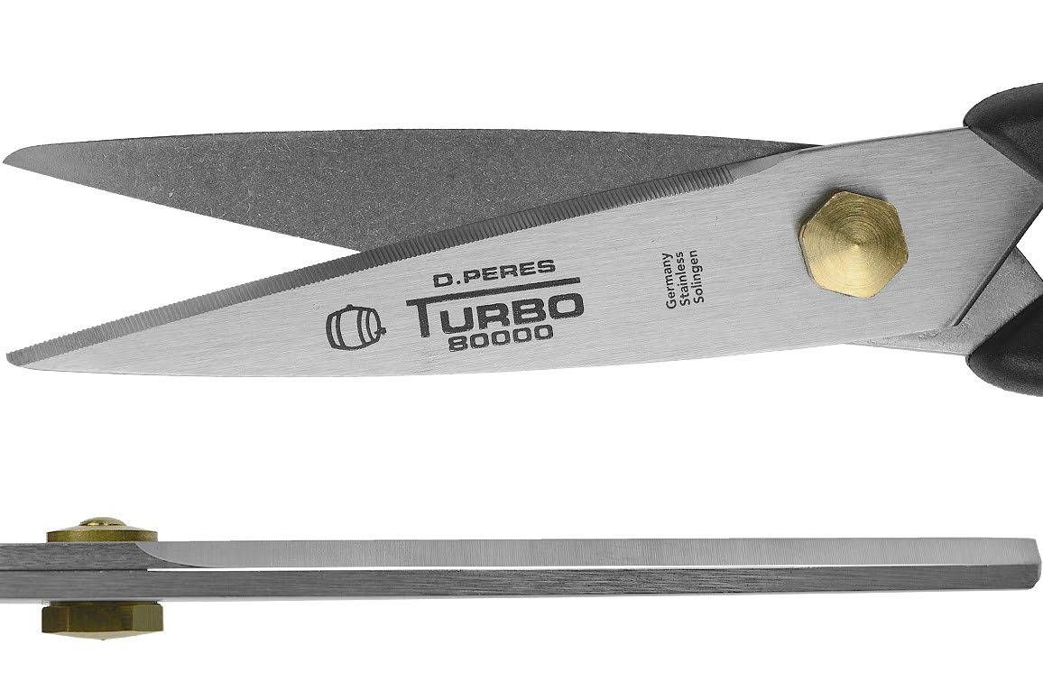 De lemmeten zijn 8 cm lang, hiervan is één zijde microvertand. De vlakke zijden van het lemmet zijn glad gepolijst, hierdoor knipt deze Daniel Peres schaar nog sneller dan de andere scharen van Daniel Peres. Het model van deze schaar is hierom "Turbo" genoemd.