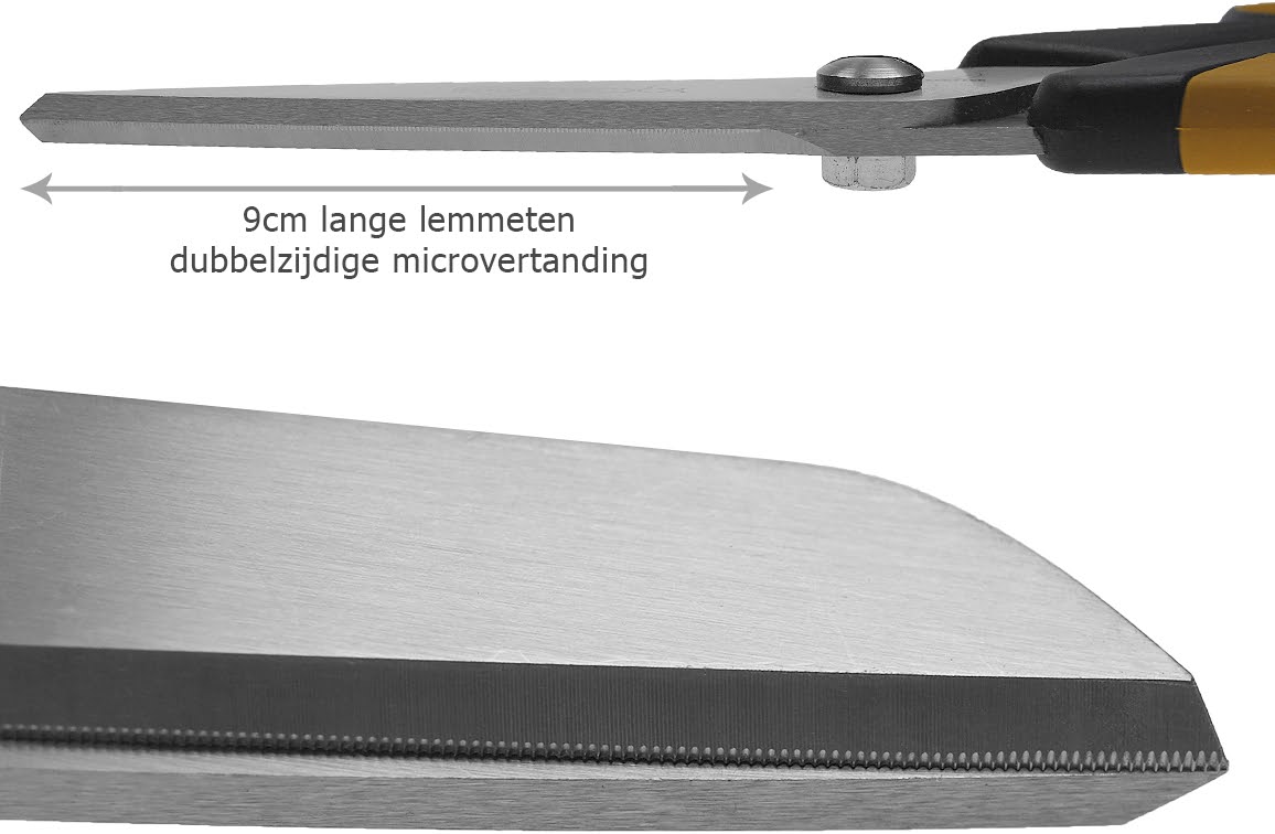Deze aramideschaar schaar beschikt over tweezijdige microvertanding en is gemaakt van extra gehard Dura Staal.