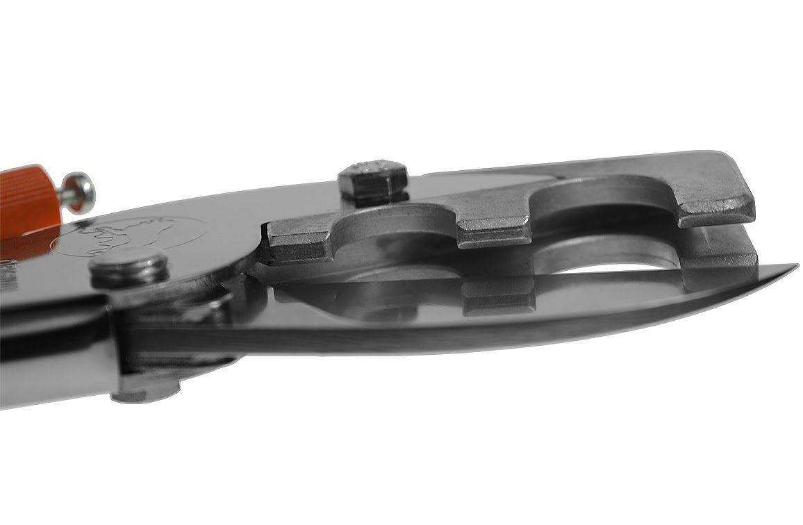 De schaar is voorzien van een solide lock-systeem dat met één hand te bedienen is. En daarnaast een degelijk automatisch veersysteem. De handgrepen zijn van comfortabel kunststof en liggen goed in de hand.