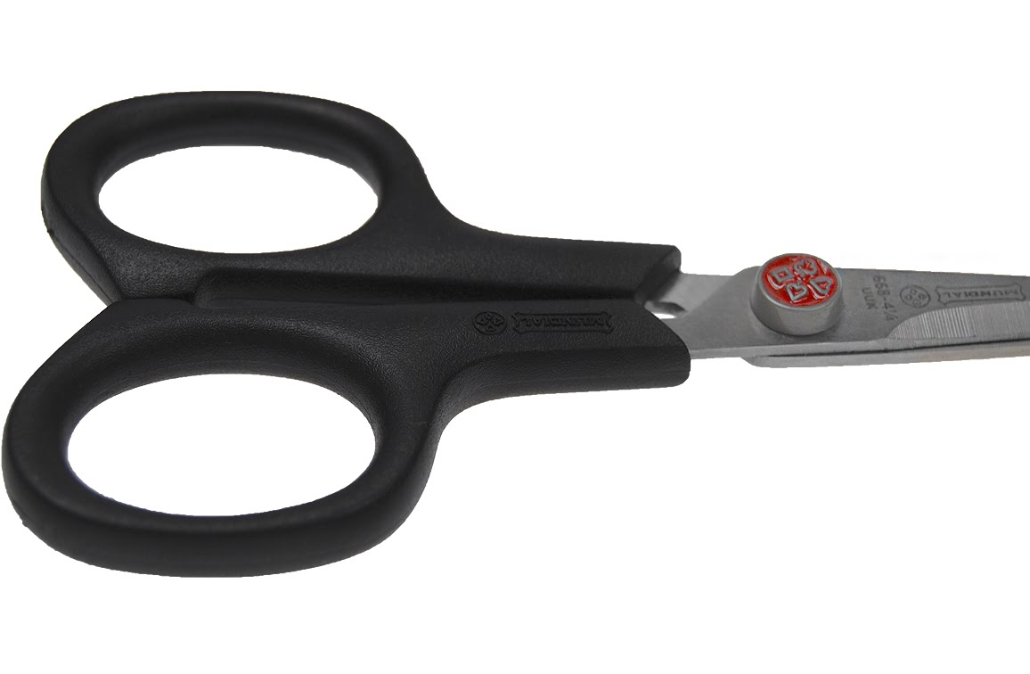 Een degelijke 11cm lange Mundial naaischaar / hobbyschaarje, gefabriceerd in Brazilië.