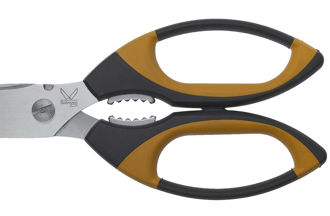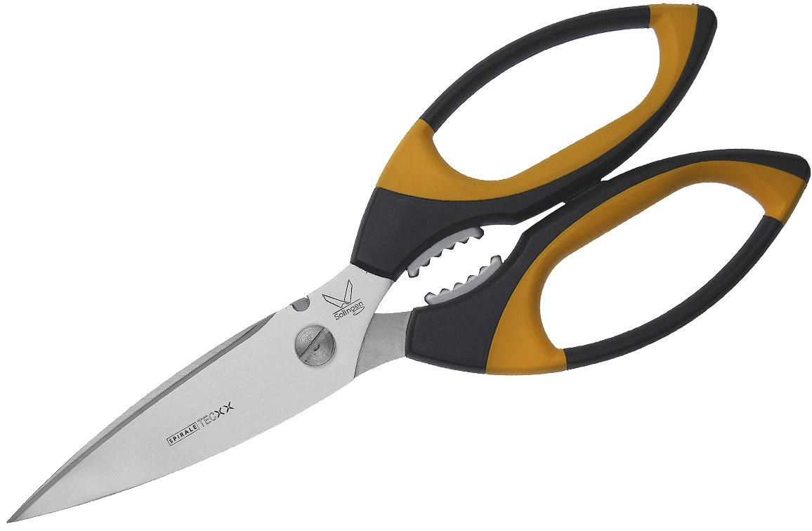De grote grepen liggen comfortabel in de hand en zijn voorzien van een zachte maar toch stevige grip, een echte kwaliteitsschaar uit Solingen.