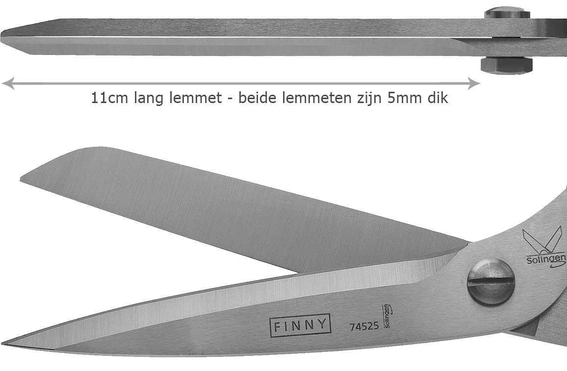 Deze schaar heeft het dikste lemmet uit ons assortiment: een maar liefst 1 cm dik lemmet ( 2x 5mm ) van 11 cm lang.